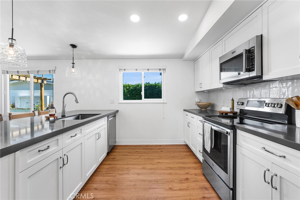 Welcome to 2314 Colgate Drive, a stunning single level 3-bedroom, 2-bathroom cottage home offering 1,587 sq. ft. of stylish living space on a generous 7,950 sq. ft. corner lot in one of Costa Mesa's most desirable neighborhoods. Every detail has been thoughtfully upgraded to blend modern comfort with timeless design. Step inside to find new vinyl flooring throughout, fresh interior paint, and an open layout that seamlessly connects the living spaces. The remodeled kitchen features a new backsplash, added bar area, and a convenient new doorway connecting the family room to the kitchen. A converted closet now serves as a functional laundry room with built-in shelving, while one bedroom includes a custom-built desk and bookcase ideal for a home office or study space. The primary suite has been completely reimagined with a luxurious renovated bathroom, a custom closet, and new French doors leading to the beautifully redesigned backyard. Outdoor living shines here with a custom fireplace, tranquil water feature, new sprinkler system, and fresh stonework at the entry and planters. Additional upgrades include a new A/C unit, furnace, electrical panel, gas line (ready for a gas stove), and updated interior and exterior light fixtures throughout. An added bonus is the oversized garage is a total win with its sleek epoxy floors and an attached room that was once the community's sales office. It's currently used as extra storage, but the space is generous and flexible enough to become your dream setup, whether that's a private office, studio, gym, or even the ultimate storage zone you've always wished for. Located just minutes from top-rated schools, local parks, and the best of Costa Mesa's shopping and dining, this home is move-in ready and designed to impress.
