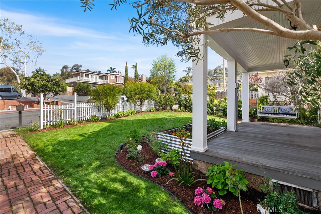 Located just moments from North Laguna's picturesque beaches and coves, 369 Hawthorne Road offers timeless charm with modern upgrades. This 4-bedroom, 2-bath home spans 2,065 sqft on a 6,125 sqft lot, blending classic East Coast style with California ease. Inside, a grand staircase sets the tone for the open floor plan, featuring a fully remodeled kitchen with stainless steel appliances; gas range and cooktop, refrigerator, microwave, and washer/dryer are included in the lease. Off the kitchen, the pantry/utility room provides plenty of storage. A formal dining area connects to a large living room with French doors, brick fireplace, and timeless architectural details. The sunlit downstairs family room doubles as a perfect office, library, or fourth bedroom. Upstairs, the primary suite offers ocean views, a fireplace, and a private deck ideal for sunsets and fireworks. The nearly 500 square foot basement is a rare bonus in Laguna, perfect for storage, hobbies, or laundry. Surrounded by manicured landscaping, the home's front and back yards, brick patio, and porches provide ideal spaces for relaxing or entertaining. Available now for lease!